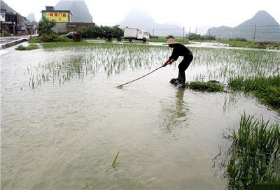 6月5日晚至6日早晨,廣西河池市羅城仫佬族自治縣遭受暴雨襲擊,河水上漲,部分地區農作物受災,當地農民在降雨過后積極開展生產自救,力爭降低損失。